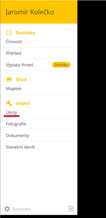 - Klikněte na menu a v něm vyberte “Úkoly”.